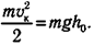 Запишем закон сохранения энергии для двух положений: начального (1) и конечного (2) — тело подлетело к земле: Е2 = Е1 В исходном положении скорость движения равна нулю и тело обладает только потенциальной энергией: El = mghQ. При падении камня потенциальная энергия уменьшается, но увеличивается его кинетическая энергия. В конечной точке траектории высота равна нулю, скорость движения максимальна (ук) и тело обладает только кинетической энергией.