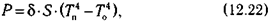 где Тп, T0 — температуры поверхности тела и окружающей среды сответственно, S — площадь поверхности тела, а δ — приведенный коэффициент поглощения. Ниже приведены параметры поглощения для некоторых материалов.
