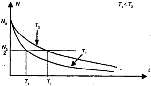 На рис. 12.7 изображены процессы радиоактивного распада для двух веществ с различными периодами полураспада.