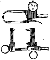 Рис. 16.38. Калиперы разного типа для измерения толщины подкожной жировой складки Исследование мышечной силы. Функциональные возможности опорно-двигательного аппарата (ОДА) в значительной степени зависят от состояния мышц. Для определения мышечной силы используют динамометры, тонусометры, электромиграфию и др. (рис. 16.39). Для определения силы кисти обычно используют динамометр Коллена. Силу разгибателей туловища измеряют с помощью станового динамометра. Для измерения силы мышц плеча и плечевого пояса, разгибателей бедра и голени, а также сгибателей туловища используют универсальные динамометрические установки (рис. 16.40).
