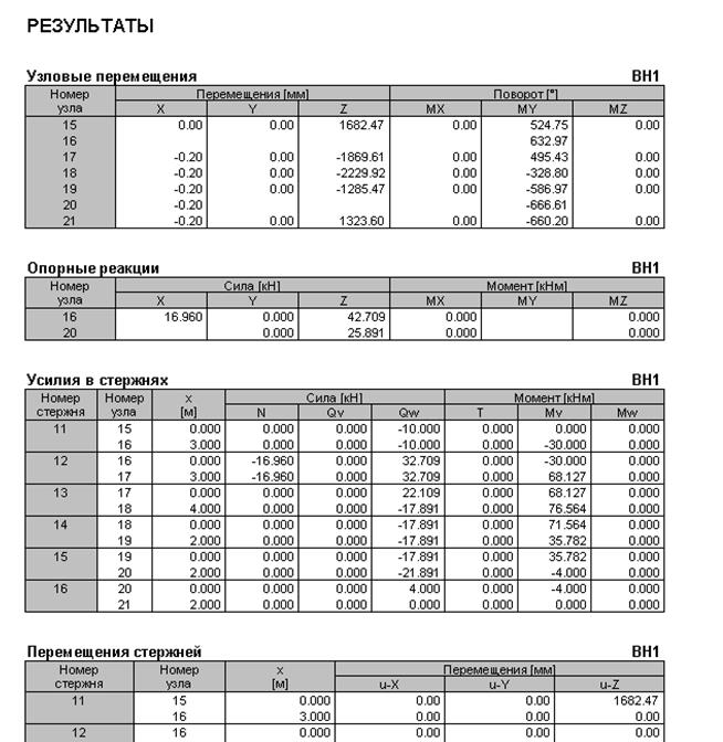 И распечатать отчет только с результатами внутренних усилий.