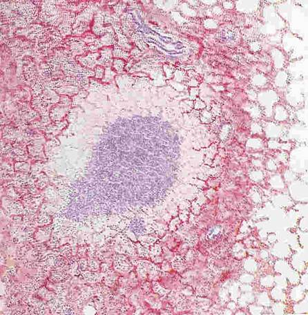 Казеозного некроза, легочная ткань ткань и средостенный лимфоузел При туберкулезе КРС. Видны очаги комплекс легких собаки. Поражена легочная