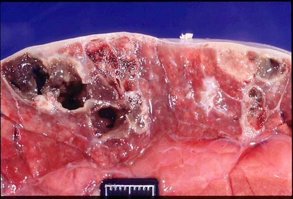 Рис. 34. Абсцедирующая пневмония у КРС при некробактериозе