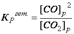 где Константа равновесия является количественной характеристикой равновесного процесса: – для необратимых реакций, прошедших до конца, – при полном отсутствии химического взаимодействия, В случае гетерогенных равновесных процессов в выражение константы равновесия входят только концентрации тех веществ, которые находятся в газовой или жидкой фазе. Пример: CO2(Г) + С(К) ↔ 2СО(Г),