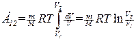 Чтобы вычислить работу идеального газа при изотермическом процессе, заменим давление в формуле (1.53) его выражением через другие величины в соответствии с уравнением состояния. В результате получим (Т можно вынести за знак интеграла, поскольку она постоянна)