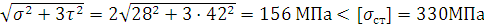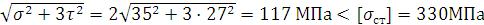 Проверка на статическую прочность Проводим по допускаемым напряжениям. При перегрузке в 200% коэффициент перегрузки Кn =2. Вал изготовлен их легированной стали 40х с характеристикой: HB = 200, σв = 730МПа, σт = 500МПа, τт =280МПа. Проверяем вал в сечении l –l, где возникают наибольшие касательные напряжения, и в сечении ll – ll, где возникают наибольшие нормальные напряжения