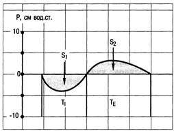 Рис. 6.1. Среднее внутригрудное давление при спонтанном дыхании. Ti — фаза вдоха; ТЕ — фаза выдоха; Si — площадь ниже нулевой линии при вдохе; 82 — площадь выше нулевой линии при выдохе; Si = 82; среднее внутригрудное давление = О.
