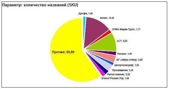 Данные о продажах на территории Москвы в I полугодии 2014 года свидетельствуют об умеренном нарастании напряженности в конкурентном ландшафте, прежде всего, благодаря росту ликвидности каталогов издательских групп «Эксмо/АСТ» и «Азбука-Аттикус». Если в январе-июне 2013 года на ТОП-20 издательств приходилось 53,3% оборота московской книжной розницы, то в январе-июне 2014 года их доля подросла до 60,4%. В прогнозных значениях по итогам 2014 года суммарная доля столичного рынка у пятерки ведущих игроков составит 47,6% (в 2013 – 38,8%; в 2012 – 40,4%). И это не предел. В полной мере результаты процессов слияния, которые сегодня мы наблюдаем в издательском бизнесе, проявятся лишь к 2017-2020гг. Пока же жесткого давления на рынок со стороны новообразованной группы «ЭКСМО/АСТ/Дрофа/Вентана-Граф» не наблюдается. генеральный директор издательской группы «ЭКСМО/АСТ» Основным приоритетом для объединенной группы «ЭКСМО/АСТ/Дрофа/Вентана-Граф» является повышение интереса к чтению и развитие рынка, потому что только на развивающемся рынке мы сможем успешно расти. И это наша основная задача, основное направление усилий. Соответственно, в приоритете – работа по оцифровке и продвижению в Интернете легального цифрового контента, развитие товаропроводящих сетей, поддержка тех партнеров, которые заинтересованы в развитии своей инфраструктуры, внедрении новых логистических и технологических решений по управлению товарными категориями. Мы рассчитываем, что наши партнеры, в рамках стабильной ситуации на рынке, найдут в себе решимость и желание развивать свой бизнес, свои технологии, сервисы, количество розничных точек, и здесь мы будем оказывать им всемерную поддержку и, безусловно, настаивать на повышении прозрачности и ответственности друг перед другом в рамках нашего взаимодействия. (Книжная Индустрия, октябрь 2014) И, тем не менее, списки бестселлеров книжного рынка Москвы по-прежнему плотно занимают книги объединенной издательской группы. Таблица 1.11. ТОП-10 бестселлеров книжного рынка Москвы: I полугодие 2014г.