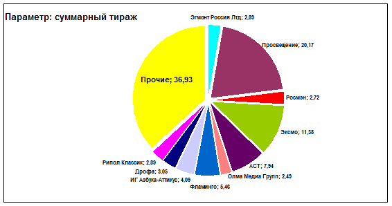 Доли ведущих издательств Москвы в суммарном выпуске книг и брошюр РФ в I полугодии 2014 года Диаграмма 1.7.