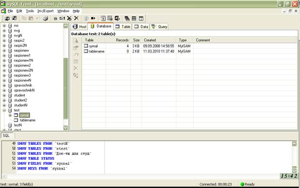 Рис. 2. Окно программы MySQL-Front