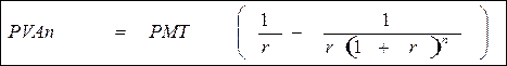 Різниця в дужках рівняння) називається фактором відсотку поточної вартості ренти (PVIFAr,n). В таблиці визначення теперішньої вартості анюїтетів обчислено значення цього показника для різних n та r. Рівняння матиме вигляд: PVAn=PMT(PVIFAr,n)