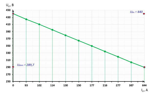 Рисунок 4 – внешняя (нагрузочная) характеристика Ud = f (Id)