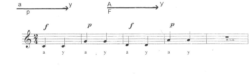 Пропевание на одной высоте изолированных звуков тихим и громким голосом: