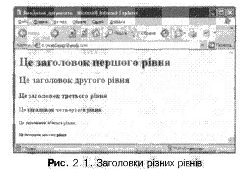 1. Введіть HTML-код веб-сторінки, на якій відображатиметься наведений вище відформатований текст. У цьому прикладі для деяких фрагментів тексту необхідно застосувати по два теги форматування, наприклад, <I><U>Україні</U></I>. Слід пам'ятати про правило вкладених тегів, згідно з яким їх потрібно закривати у зворотному до відкривання порядку. Тобто якщо спершу відкрили тег курсиву, а потім — тег підкреслення, то спочатку слід закривати тег підкреслення, а потім — курсиву. 2. Збережіть html-документ у файлі з розширенням.html. Вигляд створеної веб-сторінки у вікні браузера показаний на рис. 2.3.