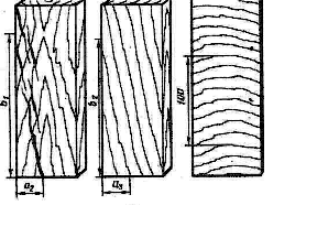 Измерение пороков строения древесины Наклон волокон измеряют в наиболее типичном месте общего направления волокон на протяжении не менее двойной ширины сортимента, по величине отклонения волокон от продольной оси сортимента, не считая небольшие местные отклонения, и выражают в процентах (размеры z1,z2)