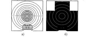 Рисунок 6. Прицілювання по мішенях з ПМ на 25 м: а) прицілювання по спортивній мішені; б) прицілювання по грудній мішені