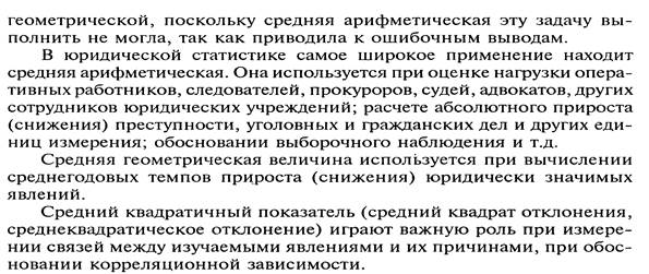 Средняя арифметическая величина и способы ее вычисления. Средняя величина в правовой статистике – это обобщенный показатель, характеризующий типичный уровень количественно варьирующих признаков (числа судимостей, возраста и т.д.) явления в конкретных условиях места и времени. Средняя величина представляет собой именованную величину и выражается в тех же единицах измерения, что и признаки у отдельных единиц совокупности (например, размерностью при расчете среднего возраста осужденных будут годы).
