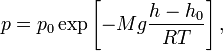 где p — давление газа в слое, расположенном на высоте h, p 0 — давление на нулевом уровне. Из барометрической формулы следует, что концентрация молекул n (или плотность газа) убывает с высотой по тому же закону: