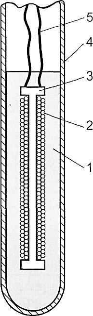 Биметаллический термометр состоит из защитной оболочки 1, фланца крепления 2, стрелки 3, шкалы с подшипником 4, корпуса 5, троса 6 для передачи вращения, биметаллической спирали 7. При изменении температуры биметаллическая спираль закручивается или раскручивается,нижний конец спирали закреплен к оболочке 1, поэтому верхний ко спирали поворачивается на угол, пропорциональный изменению температуры. Через трос 6 угол поворота передается на стрелку 3, показывающую текущую температуру. 2. Устройство терморезистивного преобразователя (термометра сопротивления) показано на рисунке 1.2.