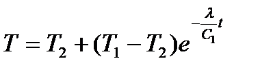 после интегрирования с учетом, что при t=0, T=T1, получаем:
