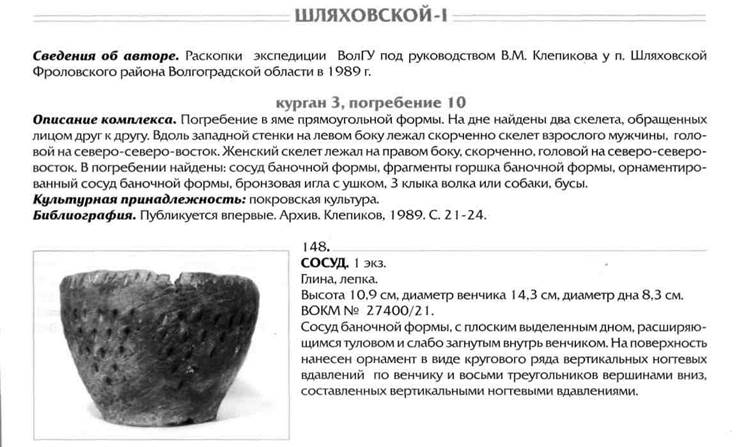 Отчет об археологических раскопках в Чернышков-ском районе Волгоградской области в 1983 г. Архив ВОКМ, ф. № 52.