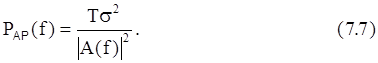 Таким образом, если задана АКП для 0£m£p, то АР-параметры можно найти в результате решения уравнений (7.14), которые называются уравнениями Юла-Yолкера для АР-процесса. Процедура оценивания СПМ по АР-параметрам, получающимся в результате решения уравнений (7.14), называется алгоритмом Юла-Уолкера. Если задана последовательность данных, то в уравнения (7.14) вместо значений неизвестной автокорреляционной функции подставляются их оценки, смещенные или несмещенные. Гарантию устойчивости АР-фильтра дает использование смещенных автокорреляционных оценок. Для решения системы (7.14) можно воспользоваться алгоритмом Левинсона [1, с. 189]. Количество необходимых для этого вычислительных операций пропорционально величине p2. СПМ АР-процесса получается следующим образом: