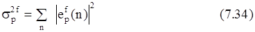 где epf(n) не является белым шумом, т. к. последовательность данных конечна. Поэтому, чтобы воспользоваться АР-моделью, будем полагать, что ошибка предсказания является отбеленным процессом, что позволит приравнять АР-параметры и коэффициенты ЛП. Ошибку ЛП вперед можно определить в диапазоне временных индексов от n=1 до n=N+p, если предположить, что данные до первого и после последнего отсчетов равны нулю (x(n)=0 при n<1 и n>N). Необходимо минимизировать модуль среднего квадрата ошибки ЛП