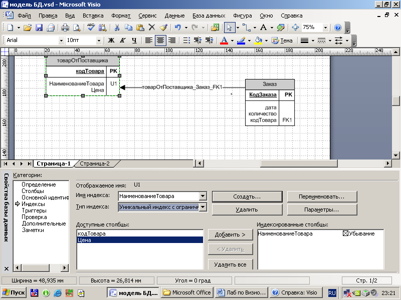 Рис.4 Упражнение 2 Для внесения в схему уточнений используется создание индексов, проверок и триггеров. Использование индексов повышает производительность или скорость работы базы данных при выполнении запроса.