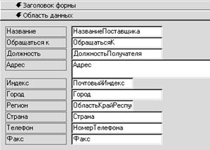 Форма "Поставщики" Вид в конструкторе Основные свойства