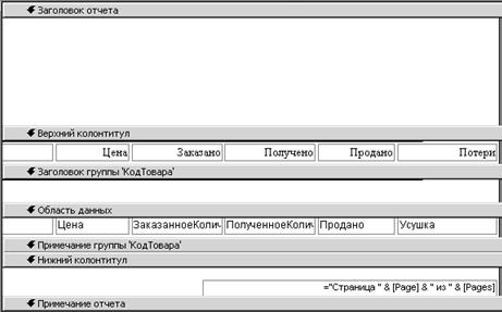2. Создать форму "Основные товары" Создать новый запрос на выборку, содержащего сведения о товарах и их типах, записи отсортировать по типу и марке товаров. Форму "Основные товары" выполнить на основе указанного запроса. Создать на форме "Основные товары" список с типами товаров для задания типа товара. Создать на форме "Основные товары" список с типами товаров для фильтрации (выбора) записей формы "Основные товары" в соответствии с выбранным из списка типом товара. Создание отчетов Для формы оформляются чаще всего разделы Область заголовка формы- выводится один развверх формы, Область данных, содержит записи таблицы или запроса, выдается столько раз, сколько записей в источнике данных. Примечание формы выводиться внизу формы один раз. Для отчета оформляются разделы: Заголовок отчета - выводится только в начале отчета Верхней колонтитул – выводится в верхней части каждой страницы Область данных – содержит записи таблицы или запроса Нижний колонтитул – выводится в нижней части каждой страницы Примечание отчета –выводится только в конце отчета Средства конструирования отчета позволяют группировать данные по нескольким уровням, для каждого уровня могут производиться вычисления итогов, определяться заголовки и примечания по каждой группировке. Все разделы можно расширить в режиме конструктора. Встать курсором на границу раздела, при этом вид курсора меняется на двунаправленную стрелку. И, не отпуская кнопку мыши, переместить границу в нужном направлении.