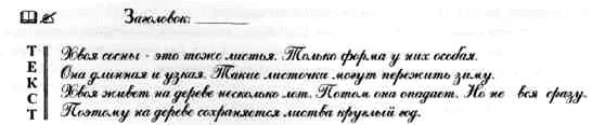 Ответы на вопросы - Определите тип текста. - Текст описание. - Определите количество предложений. - 8. - Придумайте и запишите заголовок. - Хвоя сосны. Списывание текста. (задание выполняется учащимися в тетрадях для проверочных работ).