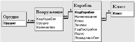 Рис. 7.8. Схема базы данных «Военные корабли»
