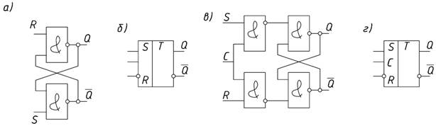 В простейшем случае триггер представляет собой симметричную структуру, составленную из двух логических элементов ИЛИ НЕ либо И НЕ (рис. 3,а).