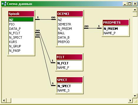 Создание базы данных. Процесс создания базы данных рассмотрим на примере описанной ранее (лекция 3) модели базы данных информационной системы Контингент студентов