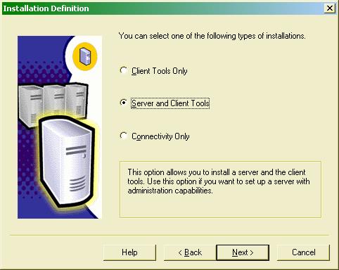 Далее программа установки попросит ввести имя пользователя и название организации, а также предложит принять лицензионное соглашение. После этого откроется окно Installation Definition. Оно содержит три варианта установки программного обеспечения (рис. 8.4):