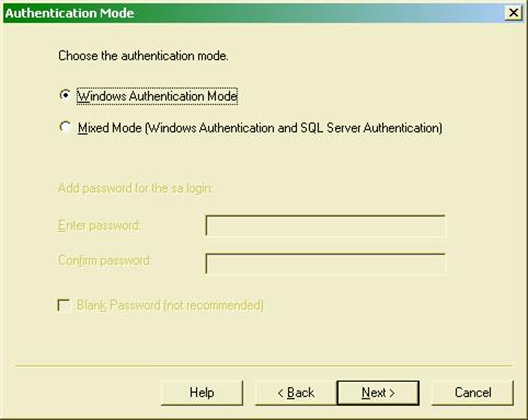 Далее выбирается система аутентификации Windows или SQL Server (рис. 8.9).