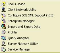 После этого начинается копирование файлов, и установка завершается созданием программной группы в меню Windows для работы с программами системы SQL Server. Одно из важных новшеств системы SQL Server 2000 - возможность установки на одном компьютере нескольких экземпляров SQL Server. Экземпляр SQL Server, который устанавливается первым, называется стандартным или используемым по умолчанию; все остальные экземпляры, установленные на том же компьютере, называются именованными. Для каждого именованного экземпляра SQL Server может быть определен собственный набор баз данных и пользователей. Если на разных компьютерах установить экземпляры SQL Server с одинаковыми именами, их можно объединить в единый виртуальный сервер. После инсталляции в группе программ Microsoft SQL Server для версии Developer Edition присутствуют пункты, показанные на рис. 8.13.