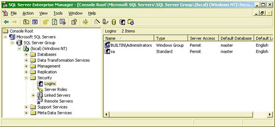 Группа BUILTIN\Administrators создается исключительно при установке SQL Server в Windows NT Server или Windows NT Server Enterprise Edition, причем только при использовании системы аутентификации Windows NT. В ней представлены все члены встроенной группы Windows NT Administrators, имеющие административные разрешения на доступ к серверу.