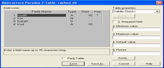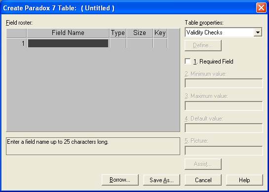 Для создания таблицы автономной базы имеется приложение Новая таблица создается построителем таблиц, который вызывается командой File/New/ТаЫе. На запрос тип СУБД выберем Рагаdох 7.0.