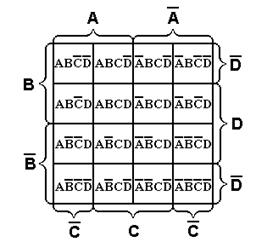 1-4. Минимизация функций алгебры логики. Переключательные функции являются математическими моделями некоторых реальных электронных цифровых схем. Для того чтобы синтезировать наиболее оптимальное цифровое устройство (например, имеющее минимальные аппаратные затраты), математическую модель этого устройства, представленную в виде СДНФ или СКНФ, преобразуют к соответствующему виду с использованием приведенных выше законов алгебры логики. Преобразование СДНФ или СКНФ логической функции к минимальному виду аналитической записи называется процессом минимизации ФАЛ. Однако результат минимизации функции с помощью законов и тождественных преобразований булевой алгебры во многом зависит от опыта разработчика и не всегда является очевидным. Поэтому разработан ряд алгоритмов, формализующих и автоматизирующих подобные преобразования. Рассмотрим один из алгоритмов минимизации, предложенный американский ученым Вейчем. Вейч предложил специальные диаграммы-карты, в которые можно записать все конституенты единицы, входящие в СДНФ (конституенты нуля, входящие в СКНФ) той или иной булевой функции. На рис. 1.2 в качестве примера приведены диаграммы для минимизаций функций двух, трех и четырех переменных соответственно.