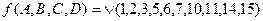 В матрице находим столбцы, содержащие по одной звездочке. Это столбцы с конституентами 000 и 111. Одиночным звездочкам в них соответствуют импликанты 0-0 и –11. Эти импликанты являются базисными, образуют ядро логической функции и обязательно входят в состав МДНФ. Далее выделяются столбцы, содержащие более одной звездочки. Такими столбцами являются столбцы с контитуентами 010 и 011. Поскольку эти конституенты покрываются импликантами 0-0 и –11 из ядра функции, то импликанта 01- является лишней и в МДНФ не входит. В результате имеем в составе МДНФ импликанты 0-0 и-11. Заменив двоичные коды полученных импликант на обозначения переменных в прямом и инверсном виде, получим окончательную запись МДНФ функции: Рассмотрим пример минимизации ФАЛ четырех переменных методом Квайна и Мак-Класски. Пусть задана функция в виде последовательности десятичных чисел: