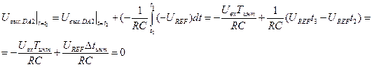 Поскольку интегрирование входного напряжения прекращается сигналом переноса P счетчика, то время интегрирования Тинт получается постоянным, независящим от амплитуды входного напряжения, а зависящим только от частоты следования тактовых импульсов и Ксч счетчика.