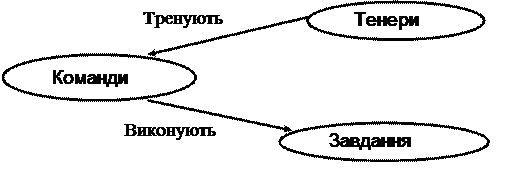 Основними поняттями ПО з організації і проведення олімпіади є поняття о тренерах та їх командах, завданнях на олімпіаду. Зв’язки між цими поняттями відображають існуючи відносини між об’єктами предметної області, а саме: - тренери тренують та готують до олімпіад команди; - команди під час проведення олімпіади вирішують завдання. Виявлені поняття (концепти) і взаємозв’язки можна надати в загальному вигляді концептуальної моделі (див. рис. 2.11).