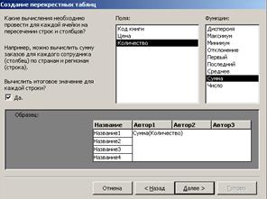 Рисунок 31 – Окно Создание перекрестных таблиц 8. Задайте имя запроса Продажи по авторам и щелкните по кнопке Готово. Подведение итогов с помощью Мастера запросов. Подсчитаем сумму продаж по каждой книге.