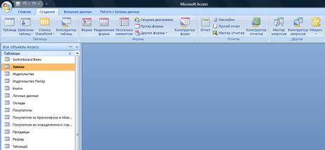 Рисунок 35 – Создание отчетов с помощью мастера 2. Затем выберите пиктограмму Отчет на панели Создание. 3. Отчет создан (рисунок 35). Создание отчета при помощи мастера Отчеты MS Access представляют мощные средства, позволяющие сортировать и группировать данные и проводить итоговые расчеты самыми разнообразными способами. 1. Для удобства работы перейдем в закладку Создание и запустим Мастер отчетов. 2. Первое диалоговое окно мастера предназначено для выбора полей, которые должны быть представлены в отчете. Выберите поля в нужной последовательности, после чего нажмите кнопку Далее.