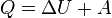 Ця форма запису носить назву рівняння (закону) Клапейрона—Менделєєва. Зміна внутрішньої енергії закритої системи, яка відбувається в рівноважному процесі переходу системи із стану 1 в стан 2, дорівнює сумі роботи, зробленої над системою зовнішніми силами, і кількості теплоти, наданої системі: ΔU = A' + Q. Робота здійснена системою над зовнішніми тілами в процесі 1->2 (Назвемо її просто А) A=-A', тоді закон приймає вигляд: