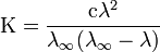 Де К — константа дисоціації електроліту, с — концентрація, λ і λ∞ — значення еквівалентної електропровідності відповідно при концентрації