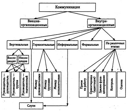 Как все иные управленческие функции, коммуникативная функция характеризуется множест-венностью типов и форм, способов и методов ее реализации. В связи с этим существует ряд классификаций типов коммуникаций в деятельности руководителя. По признаку ориентации, направленности коммуникаций руководителя они подразделяются на внешнеорганизационные и внутриорганизационные. Любая организация находится в опреде-ленном внешнем окружении, зависит от него и вынуждена постоянно адаптироваться к его измене-ниям. В силу этого имеют место ее постоянные и интенсивные коммуникации с внешней средой. Сре-дства коммуникации со средой многообразны. Это - деятельность руководителя по организации рек-ламы и создание (поддержание) имиджа организации; деятельность руководителя по проведению маркетинговой политики на внешнем рынке; его участие в подготовке регулярных отчетов для выше-стоящих инстанций; само участие в работе этих инстанций. Особую роль во внешнеорганизационных коммуникациях руководителя играет представительская функция. Любой руководитель постоянно контактирует и с паритетными ему по статусу руководителями других - смежных организаций, и с вышестоящими руководителями организаций, в которые возглавляемое им учреждение входит на правах структурного подразделения. В этих случаях он как бы олицетворяет (персонифицирует) организацию в целом, представляет ее во внешней среде. Этот тип коммуникаций специфичен. Когда руководитель участвует в работе вышестоящих инстанций, он выступает одновременно и как подчиненный. В связи с этим возникает явление маргинальности его коммуникативного поведения. Внутриорганизационные коммуникации подразделяются на вертикальные и горизонтальные. Вертикальные коммуникации представляют собой обмен информацией между иерархическими уров-нями организации, а горизонтальные - обмен в пределах паритетных иерархических уровней. В свою очередь, вертикальные коммуникации делятся также на два основных типа - нисходящие и восходя-щие коммуникации. Первые чаще всего являются основной формой, в которой руководитель реализу-ет свои управленческие воздействия. Это - приказы, распоряжения, указания, предписания, установ-ки, рекомендации, директивы и др. Вторые представляют собой систему каналов движения информа-ции «снизу вверх». Эта информация также может быть различной по своему функциональному пред-назначению и выступает, в частности, в форме сигналов о событиях, оповещения о неблагополучии дел, официальных отчетов (устных и письменных), неформального осведомительства и др. Горизон-тальные коммуникации разнотипны. Во-первых - это коммуникации между паритетными подраз-делениями организации (в том числе - между группами). Они возникают вследствие необходимости координации их работы и служат этим целям. Во-вторых - коммуникации между исполнителями, сос-тавляющие наиболее обширное «поле» всех коммуникативных обменов в организации. Здесь возни-кают многочисленные и противоречивые социально-психологические феномены, с которыми должен считаться руководитель, например межличностные конфликты. В-третьих - коммуникации между па-ритетными руководителями подразделений внутри организации (например, между руководителями среднего и особенно низшего звена управления). Вертикальные и горизонтальны