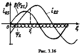 — координата, определяющая положение проводника на роторе (рис. 3.16), а ψ 2 — угол сдвига фаз между ЭДС e 2 s (согласно п. 3.4.1 ЭДС e 2 s совпадает по фазе с индукцией В) и током ротора i 2 s . Таким образом, Средняя сила, действующая на проводник, определяется как интеграл вдоль окружности ротора от силы f, действующей на один проводник: Заменяя произведение синусов на разность косинусов, получаем: