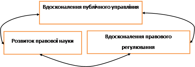 Рис. 2.1. Взаємозв’язок факторів: розвитку правової науки, вдосконалення правового регулювання та вдосконалення публічного управління суспільними відносинами